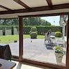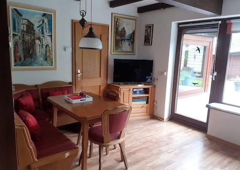- Wohnbereich mit direktem Zugang zur Terrasse und zum Garten