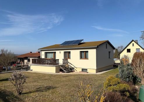 Das Haus wurde 1980 in monolitischer Bauweise erstellt. Im oberen Bereich befinden sich Küche mit belüfteter Speisekamme,Vollbad mit Dusche und getrennte Toilette sowie vier Zimmer. Das Wohnzimmer hat Parkettfußboden. Dazu kommen der heizbare Wintergarten mit überdachter Westterasse und die Südterasse über der Garage.