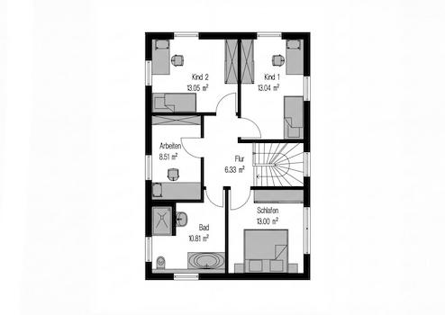 Änderungen der Raumaufteilung oder der Fenstergrößen und -positionierungen sind möglich. Fragen Sie Ihren persönlichen STREIF-Bauberater.