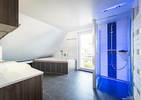 - Tageslichtbad mit ebenerdiger Dusche und Badewanne,