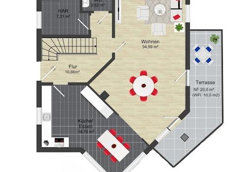 Das Einfamilienhaus ist wie folgt aufgeteilt: