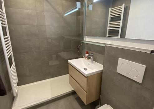 Das elegante Bad ist mit Dusche, WC und hochwertigen Marken Sanitär Objekten ausgestattet.