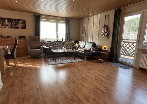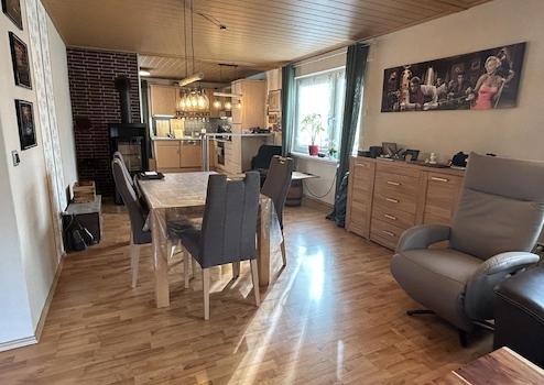 Diese schöne und sehr gepflegte Wohnung befindet sich im Obergeschoss eines 3-Familienhauses (nur 2 Eigentümer in der WEG) aus dem Baujahr 1967. Sie verfügt über ca. 115 m² Wfl. , einen großen umlaufenden Balkon, einen Kellerraum und einen Carportstellplatz am Haus. Die Wohnung bietet eine geräumige Diele, ein großes Wohn-Esszimmer mit Zugang zum Balkon, eine offene Küche mit kleiner Frühstückstheke, ein Elternschlafzimmer, ein kleines Kinder- oder Arbeitszimmer und ein komplett modernisiertes Duschbad mit großer Wellness-Dusche. Im Esszimmer gibt es einen modernen Kaminofen für gemütliche Winterabende. Diese Wohnung ist ideal für 2 Personen oder die kleine Familie mit einem Kind geeignet. Zur Wohnung gehören noch ein Kellerraum, der komplette Dachboden, ein überdachter Stellplatz am Haus sowie ein Gartenanteil.