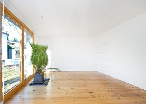 Eine Besonderheit ist das ausgebaute und wohnlich gestaltete Nebengelass mit bodentiefen Fenstern, zwei Räumen, einer Einbauküche und einem eigenen Bad mit Dusche. Dieser Bereich eignet sich nicht nur perfekt für Gäste oder größere Kinder, die hier ein Gefühl von Unabhängigkeit genießen können, sondern auch hervorragend als Homeoffice, für gewerbliche Zwecke oder als Gästehaus.