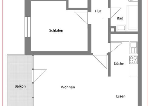 Das Herzstück der Wohnung ist das großzügige Wohnzimmer mit offenem Küchen- und Essbereich. Große Fensterflächen sorgen für viel Tageslicht und ein angenehmes Wohngefühl. Vom Wohnzimmer aus gelangen Sie direkt auf den Balkon, der zum Entspannen und Verweilen im Freien einlädt.