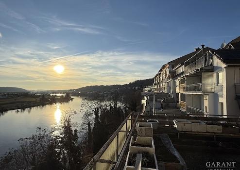 Die Wohnung, die sich über die Etagen 1 und 2 erstreckt, beinhaltet vier Zimmer, ein Badezimmer, ein separates WC sowie zwei großzügige Terrassen mit tollem Rheinblick.