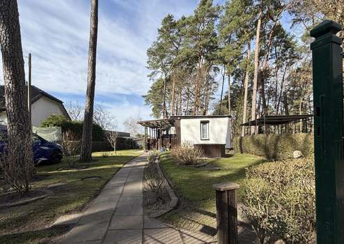 Über einen romantischen, schmalen Weg wird der Blick schon von weitem auf den glitzernden Ruppiner See gelenkt. Eine massive Treppe überwindet die Höhendifferenz, des stark abfallenden Grundstücks.