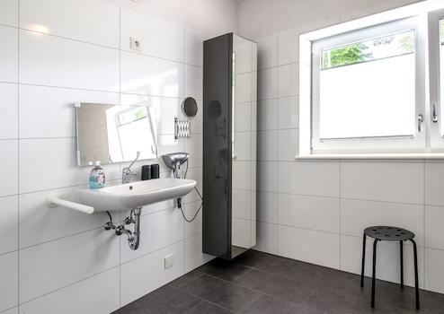 – Ein Bad, vollständig barrierefrei, ist von einem Schlafzimmer direkt zugänglich