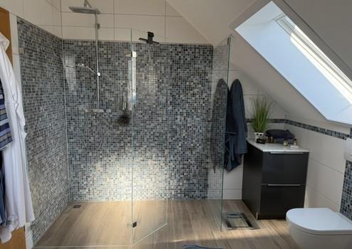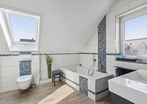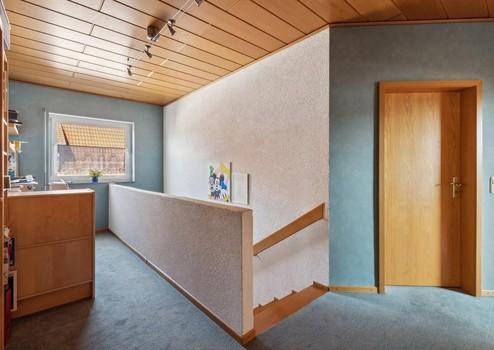 Im Dachgeschoss mit großer Empore befindet sich das Elternschlafzimmer mit begehbarem Kleiderschrank, angrenzendem Masterbad mit Whirlwanne. Vom Elternschlafzimmer gelangt man auf den 9 qm großen Balkon mit Blick auf den Garten.