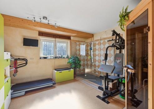 Im Keller mit normaler Raumhöhe befinden sich der geräumige Vorratskeller, zwei Hobbyräume, der Heizungsraum und ein heller Fitnesskeller mit begehbarer Dusche und Sauna.