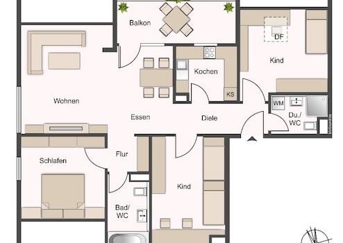 - Großzügige Raumaufteilung - 2 Bäder - Sonnige und nicht einsehbare Dachterrasse - Keine Kehrwoche und kein Winterdienst da Hausmeisterservice - Da die Wohnung zur Zeit als Wohngemeinschaft genutzt wird, wurde aus ...