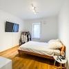 - Badezimmer mit bodentiefer Dusche und Handtuchheizkörper