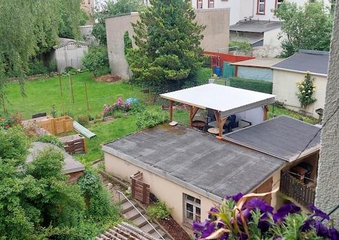 Zur Wohnung gehören sowohl ein Keller- als auch ein Bodenraum, sowie ein kleiner Garten direkt hinterm Haus.
