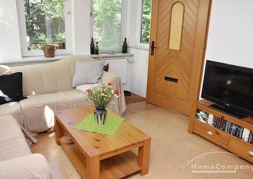 Sehr gemütliche Wohnung für 1-2 Personen im Erdgeschoss mit eigenem Eingang in Laatzen-Gleidingen. Korkfußboden. Wohnbereich mit Ecksofa, Couchtisch, Lowboard mit Kabel-TV und Stereoanlage, Vitrinenschrank, Esstisch ...