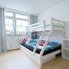 The perfect apartment for a group or a family—it can sleep up to 5 people! The spacious living room features a leather sofa set, a modern wall unit with a flat-screen TV, and a large dining table for 6–8 people. From here, you can step out onto the south-facing balcony, which offers a magnificent view of the city. The separate, fully equipped kitchen has everything you could need: a ceramic cooktop with oven, range hood, dishwasher, a fridge-freezer, and all necessary cooking utensils are provided here. A microwave can be added upon request. Bedroom 1 features a double bed (1.60 x 2.00 m) and a wardrobe. Bedroom 2 has a bunk bed with a total of 3 sleeping spots and a wardrobe. The bathroom features a bathtub with a shower, a sink, and a toilet; there is also an additional guest toilet. A washer-dryer for exclusive use is installed in a utility room, and laundry can be conveniently dried on the covered balcony. A parking space completes this offer. The rent is €1,200 for up to 2 people, including all utilities and ancillary costs, internet access, and the parking space. The rent increases by €100.00 for each additional person. The tenant is responsible for the final cleaning. It is charged based on time and effort and currently costs €35.00 per hour.