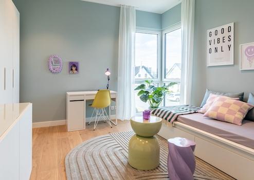 Auf 143 m² präsentiert sich das behagliche und moderne Familien-Zuhause. Im Obergeschoss punktet die Grundrissplanung mit zwei großen Kindernzimmern, einem Schlafzimmer mit Ankleide und einem Familienbad. Auf 40 m² ...