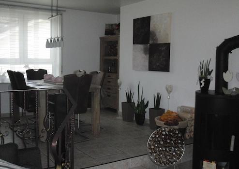 Balkon, Terrasse, Garten, Vollbad, Duschbad, Einbauküche, Gäste-WC, Kamin, Fliesen