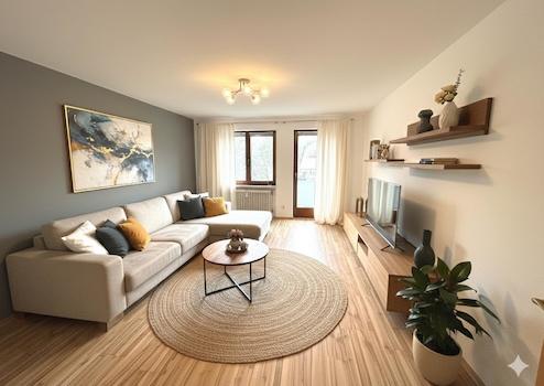 Willkommen in Ihrem neuen Zuhause, wo pulsierendes Stadt leben auf private Entspannung trifft. Diese lichtdurchflutete Wohnung besticht durch einen intelligenten Grundriss und ein modernes Wohnkonzept. Das Herzstück der Wohnung ist der großzügige, offen gestaltete Wohn- und Essbereich.