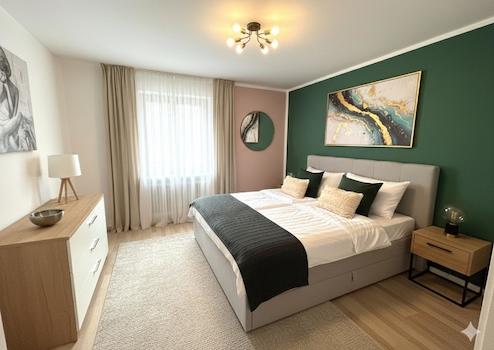 Es handelt sich hier teilweise um maßstabsgetreue Fotos, welche mit KI bearbeitet wurden. So oder ähnlich könnte der Raum nach erfolgter Renovierung und mit neuer Ausstattung aussehen.