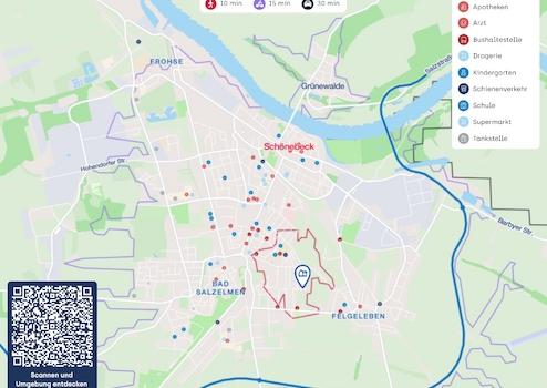 Ein besonderer Mehrwert dieser Lage ist die Nähe zum Kurort Bad Salzelmen, der in etwa 15 bis 20 Gehminuten erreichbar ist. Das historische Gradierwerk mit seiner salzhaltigen Luft bietet einen hohen Gesundheits- und Erholungswert und lädt zu entspannten Spaziergängen ein. Darüber hinaus befinden sich das Elbufer sowie der beliebte Elberadweg in kurzer Entfernung und eröffnen vielfältige Möglichkeiten für Spaziergänge, Radtouren und naturnahe Freizeitaktivitäten.
