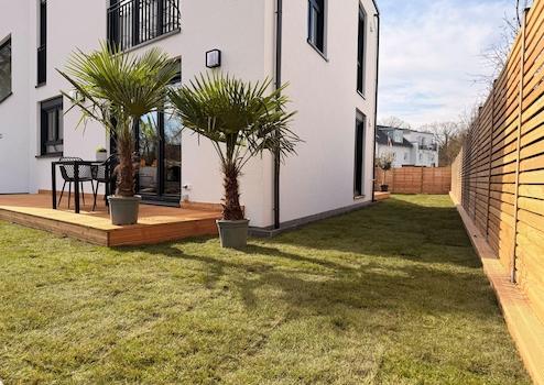 Der Außenbereich befindet sich aktuell noch in der finalen Fertigstellung und wird selbstverständlich passend zum hochwertigen Gesamtbild des Hauses gestaltet.