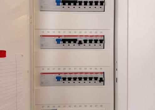 - 3-adrige Elektroleitungen inkl. Unterverteiler, Kippschaltautomaten, FI-Schalter und Multimedia Hub innerhalb des Hauses. Inklusive Netzwerkkabeln und Netzwerkdosen in jedem Aufenthaltsraum
