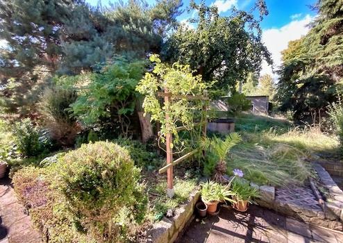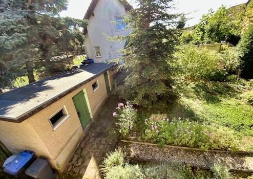 Das Fachwerkhaus steht auf einem großzügigen Grundstück von 715 m² mit eigenem Garten, der viel Platz für Erholung und Gestaltungsideen bietet. Das unausgebaute Dach eröffnet zusätzliche Ausbau- oder Erweiterungsmöglichkeiten.