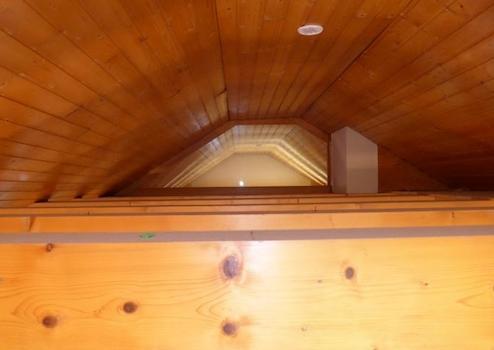 - Das Dachgeschoß mit sehr hohen Räumen (lichte Balken) ist mit hellem Holz ausgekleidet.