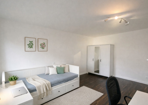 Ein helles, gemütliches und voll möbliertes Zimmer wartet auf dich – Teil einer 80 m2 großen, frisch sanierten Wohnung mit Erstbezug nach Sanierung.