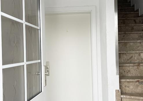 Durch den rechten Hauseingang gelangt man zunächst in einen kleinen Windfang. In dieser „Haushälfte“ wohnen zwei Parteien. Geradeaus gelangt man in eine Erdgeschosswohnung. Über eine Treppe geht es dann in die darüberliegende Obergeschosswohnung.
