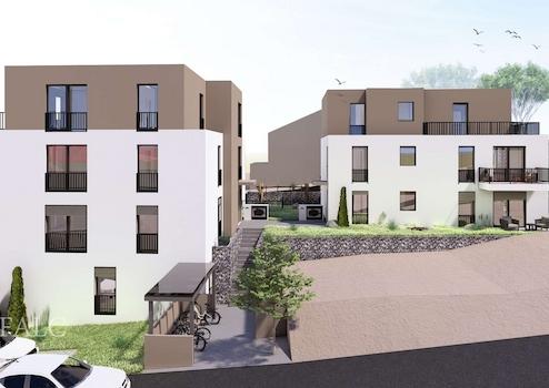 In attraktiver Wohnlage entsteht ein modernes Mehrfamilienhaus mit insgesamt acht hochwertigen Wohneinheiten in solider Massivbauweise. Das Gebäude wird als KfW-Effizienzhaus 55 errichtet und verbindet energieeffizientes Bauen mit moderner Architektur und hohem Wohnkomfort. Die Wohnungen überzeugen durch durchdachte, zeitgemäße Grundrisse mit großzügigen Wohn- und Essbereichen sowie großen Fensterflächen, die für helle und freundliche Räume sorgen. Alle Wohnungen verfügen über Balkone oder Terrassen, die zusätzlichen Wohnraum im Freien bieten. Das Untergeschoss wird als massive Weiße Wanne ausgeführt und bietet neben Technikräumen auch private Kellerabteile für jede Wohnung sowie gemeinschaftliche Abstellflächen für Fahrräder, Kinderwagen und Gehhilfen. Die Außenwände bestehen aus tragenden Kalksandsteinen und werden mit einem hochwertigen Wärmedämmverbundsystem versehen. Die moderne Fassade erhält einen Strukturputz mit langlebigem Silikonharzanstrich. Ein extensiv begrüntes Flachdach sorgt zusätzlich für eine nachhaltige Bauweise und verbessert das Mikroklima. Große Kunststofffenster mit energieeffizienter 3-fach-Verglasung sowie elektrisch betriebene Rollläden bieten hohen Wohnkomfort und sehr gute Wärmedämmwerte. Die Beheizung erfolgt über eine moderne Luftwärmepumpe in Kombination mit einer Fußbodenheizung mit Einzelraumsteuerung in allen Wohnräumen. Dadurch entsteht ein angenehmes Raumklima bei gleichzeitig niedrigem Energieverbrauch. Die Bäder werden hochwertig ausgestattet und verfügen über bodengleiche Duschen mit Klarglasabtrennung, Sanitärobjekte von Villeroy & Boch sowie Armaturen von Hansgrohe. Eine moderne Elektroinstallation mit CAT-7 Netzwerkverkabelung, Video-Türsprechanlage sowie ein Personenaufzug über alle Geschosse sorgen für zusätzlichen Komfort. Zur weiteren Ausstattung gehören eine Photovoltaikanlage, Garagentellplätze mit Wallbox-Vorrüstung für Elektromobilität, elektrische Garagentore sowie attraktiv gestaltete Außenanlagen mit Grünflächen. Ein zukunftsorientiertes Wohnkonzept, das moderne Architektur, hochwertige Ausstattung und energieeffiziente Technik ideal miteinander verbindet. Das Projekt wird vorbehaltlich der Baugenehmigung realisiert
