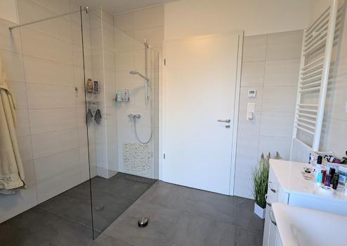 - Bad mit bodentiefer Dusche und Glasabtrennung