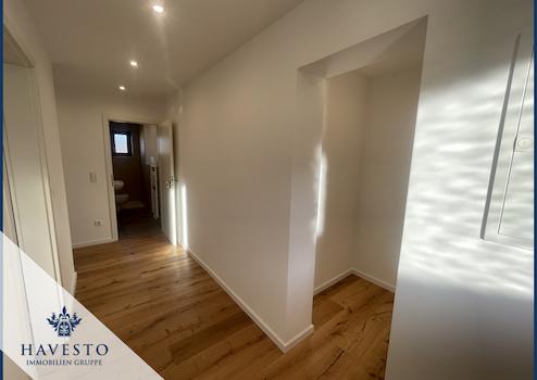 Von hier aus öffnet sich der Zugang zu den Wohnräumen. Der Boden ist mit neuem Parkett ausgestattet, das der Wohnung Wärme und Wertigkeit gibt und den modernen Look perfekt ergänzt. Die Türen und Zargen wurden vollständig erneuert, wodurch ein einheitliches Erscheinungsbild entsteht, das man bei vielen Bestandswohnungen in dieser Größe selten findet.