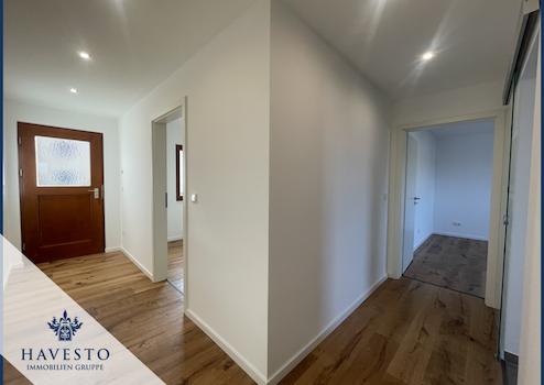 Sie betreten die Wohnung über einen gepflegten Eingangsbereich, der direkt vermittelt, was Sie erwartet: ein frisch erneuertes Wohngefühl, klare Farben, glatte Wände und eine moderne Lichtführung. Im Flur sorgen abgehängte Decken mit integrierten Deckenspots für eine angenehme, gleichmäßige Ausleuchtung. Zusätzlich entsteht durch die separate Garderobenfläche ein praktischer Bereich für Jacken, Schuhe und Stauraum, ohne dass der Wohnraum dadurch unruhig wirkt.