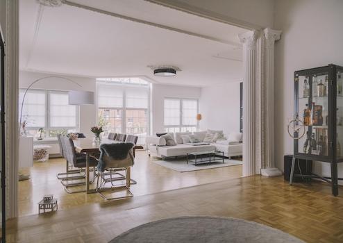 Schon beim Betreten spürt man die Großzügigkeit und die hochwertige Ausführung: hohe Decken mit klassischem Stuck, durchgängiger, edler Parkettboden und lichtdurchflutete Räume schaffen eine harmonische Atmosphäre mit zeitloser Wertigkeit.