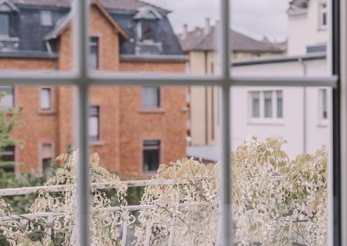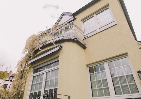 - Drei Balkone mit Blick in den Hinterhof/Garten oder auf die Kinzig