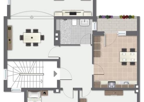 Der außergewöhnlich großzügige Wohn- und Essbereich, der sich über zwei Ebenen (verbunden durch zwei Stufen) erstreckt, verleiht der Wohnung eine besondere Dynamik und Großzügigkeit. Der lichtdurchflutete Bereich bietet vielfältige Gestaltungsmöglichkeiten – ob repräsentativer Essbereich, gemütliche Wohnlandschaft oder stilvolle Kombination aus beidem. Hier entsteht ein Wohngefühl, das man in klassischen Etagenwohnungen nur selten findet.
