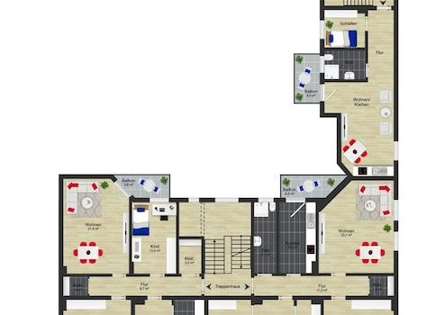 - drei 4-Raum-Wohnungen mit ca. 93-97 m² Wohnfläche und Balkon