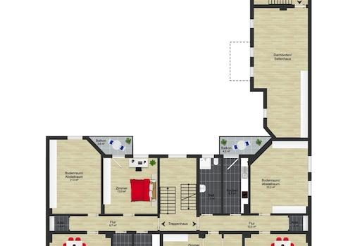 Das Mehrfamilienhaus in der Umfassungsstraße 23 ist wie folgt aufgeteilt:
