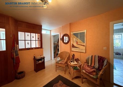 Mit einer Wohnfläche von ca. 290 m², verteilt auf drei Etagen, bietet dieses Haus insgesamt 13 Zimmer, darunter fünf Schlafzimmer und drei Badezimmer. Die Immobilie bietet hohe Decken (EG und OG mit 2,80 m), lichtdurchflutete Räume und einen traumhaften Blick in die Natur.