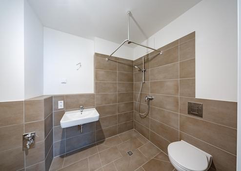 Badewanne, bodengleiche Dusche, Rückkanalfähiger Breitbandkabelanschluss, Fernheizung/Zentralheizung, Warmwasserversorgung dezentral - Durchlauferhitzer, Fern-/Zentralwarmwasserversorgung, Wärmetauscher, Handtuchheizkörper, Fußbodenheizung, Barrierearme Wohnungsgestaltung
