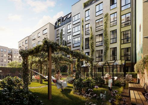 Das Projekt zeichnet sich durch seine Holz-Hybrid-Bauweise, energieeffiziente Systeme einschließlich Photovoltaik-Anlagen und Luftwärmepumpen sowie einen wunderschön gestalteten Gemeinschaftsgarten mit Pergola und Glaspavillon aus. Eine Tiefgarage bietet Stellplätze für Autos, Fahrräder und E-Mobilität.