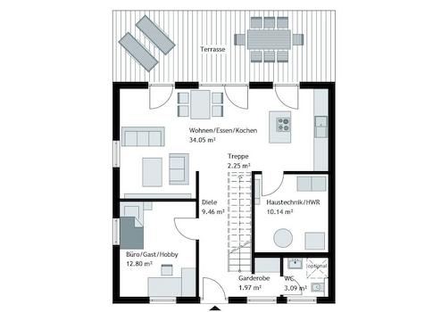 Flexibilität, die mitwächst: Der extra Raum im Erdgeschoss ist ein echtes Multitalent - egal ob als Homeoffice, Gästezimmer oder, dank optionalem Duschbad, sogar für das Wohnen auf einer Ebene.