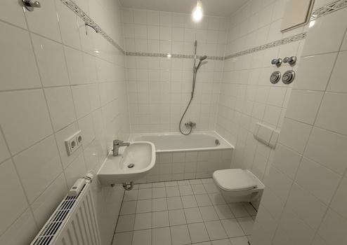 Das Badezimmer wurde ebenfalls vollständig modernisiert und verfügt über eine neue Kaldewei Badewanne, ein spülrandloses Duravit WC mit Soft-Close-Funktion, einen modernen Waschtisch sowie neue Armaturen von Vigour. Ergänzt wird die Ausstattung durch eine neue Heizlösung im Bad.