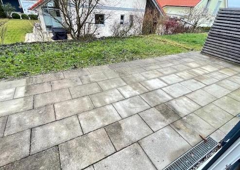 * schöne Terrasse mit kleinem Garten