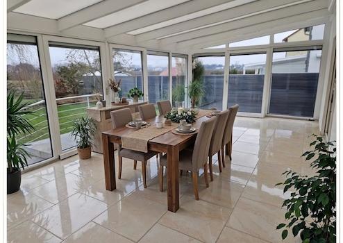 Ganzjahres-Wintergarten (errichtet 2018) mit Klima-Anlage mit eigener Wärmepumpe, Fußbodenheizung und elektrisch bedienbarer Außenbeschattungsanlage;