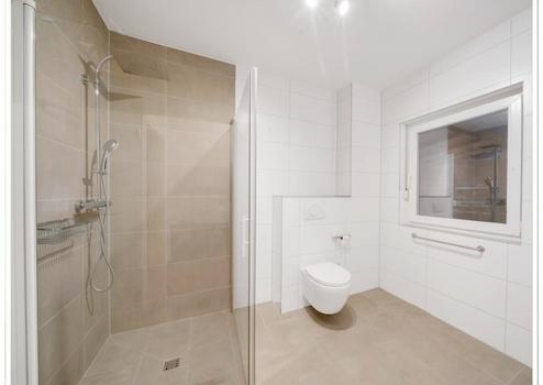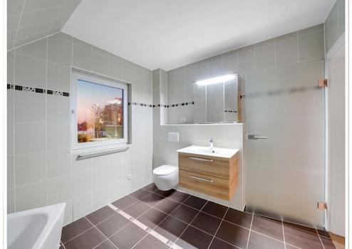 Ggeschmackvoll ausgestattete Bäder: Bad im EG mit bodengleicher Dusche, Bad im DG mit Wanne;