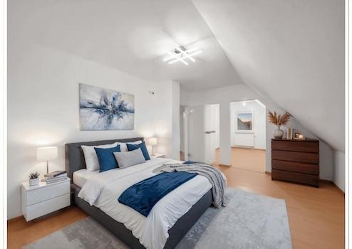 Die ca. 94 m² große 3,5-Zimmer-Wohnung liegt im 1.Obergeschoss eines 2009 kernsanierten und 2022/23 frisch renovierten Mehrparteienhauses. Das Gebäude umfasst zwei Vollgeschosse und Dachgeschoss mit 44° steilem ...