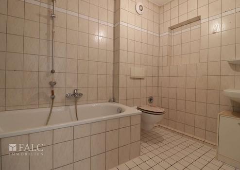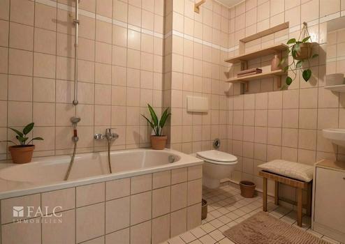 - Gefliestes Badezimmer mit Badewanne