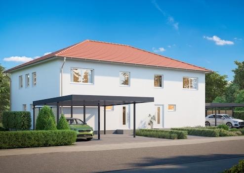 Das zweigeschossige Mehrfamilienhaus mit zwei Wohnungen überzeugt mit einer klassisch eleganten Architektur mit Walmdach und zwei behaglichen Terrassen. Der Hausentwurf kann mit Stahlbalkonen an der Gartenseite ...